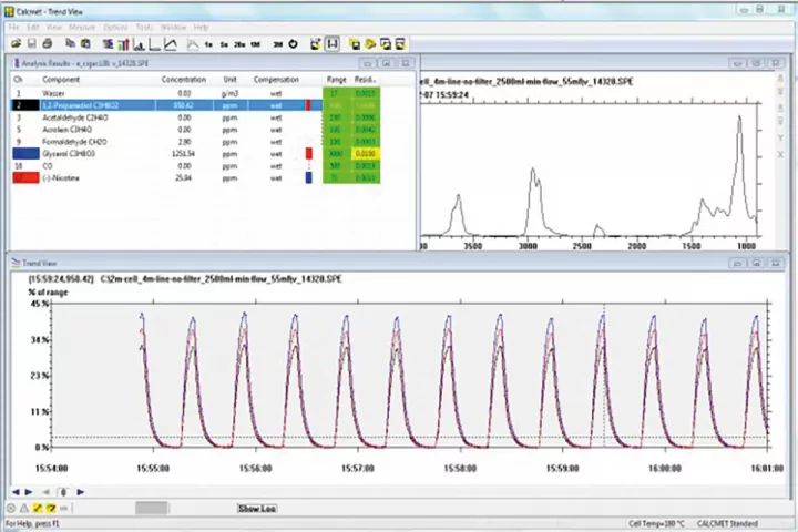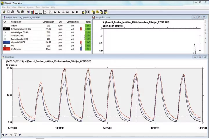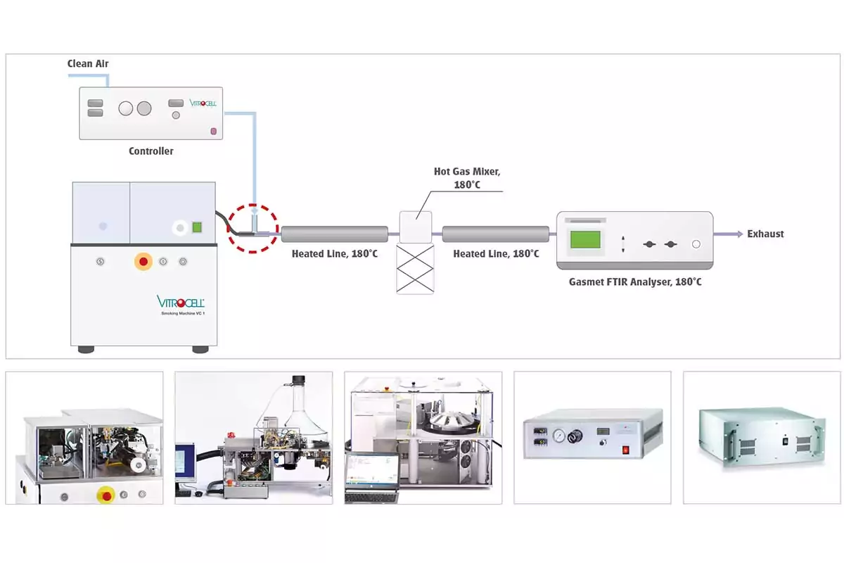 This setup was developed in close cooperation with Gasmet. The system offers a puff-by-puff quantitification of key constituents of aerosol from electronic cigarettes.