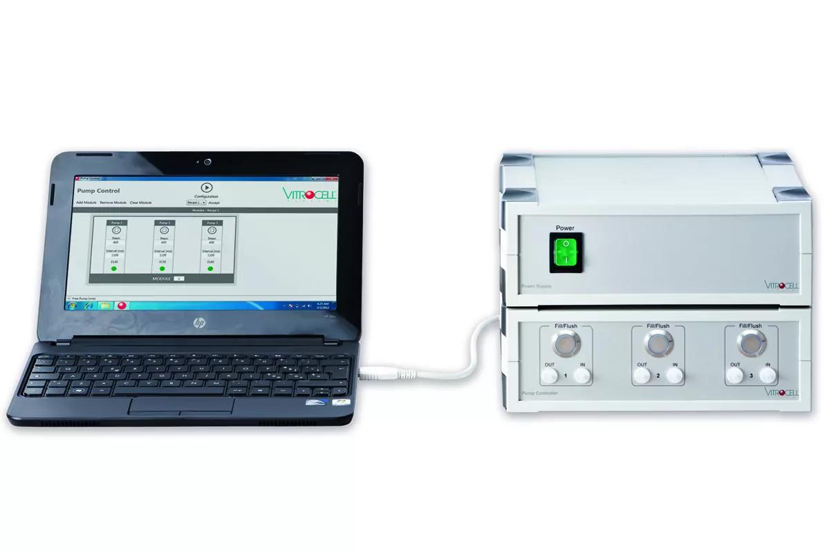 The VITROCELL® Precision Pump System was specifically developed and engineered for the time-based dosing of miniscule quantities (5-180 µl).