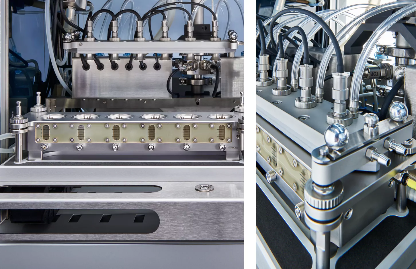 The control software is operated via an industrial tablet PC and provides an intuitive operation of the system. The system carries out all process steps automatically and supports the operator with step-by-step instruction for all steps from preparation to experiment and post processing.