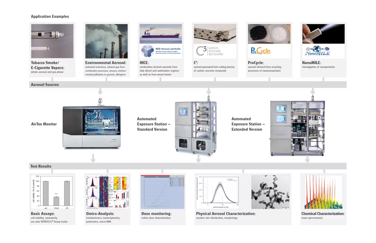 The VITROCELL® AirTox Monitor is designed for automated exposure of lung cell cultures at the Air/Liquid Interface with full control of all relevant parameters such as temperature, humidity, exposure duration and flows.