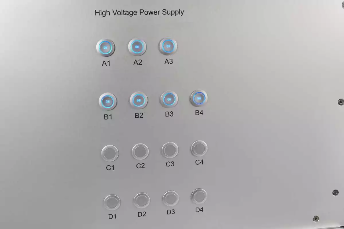 The aerosol inlet stream flows through specifically shaped inlets which are optimized for electrostatic deposition. They are made of stainless steel with VITROGLIDE surface treatment. The stainless steel / VITROGLIDE inlets are specifically designed for the work with nanoparticles. The aerosol flow rate is controlled by mass flow controllers, with data recording by the central data management system.