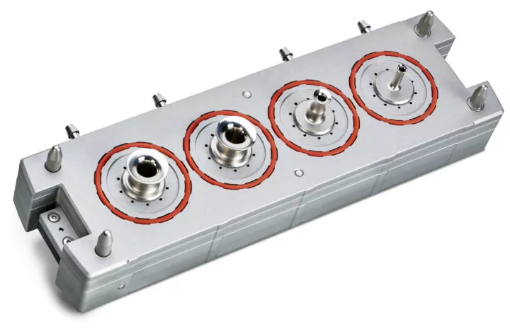 Exchangeable aerosol inlets ensure a versatile use of exposure module. The top and base modules incorporate integrated electrical heating.