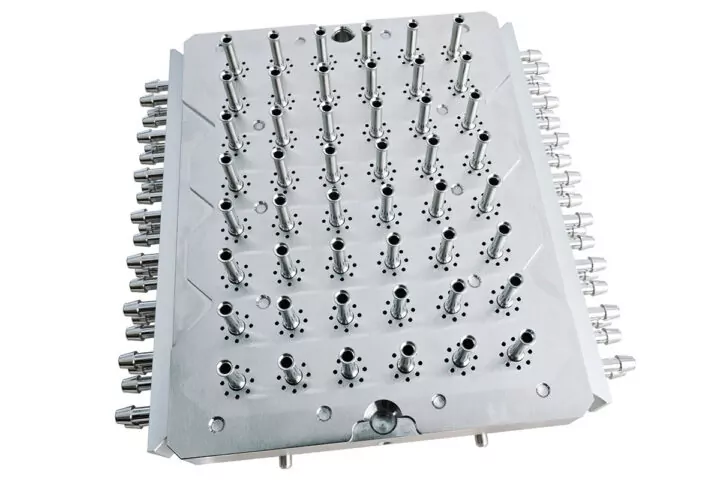 The base module with 48 wells (24-well-size) is made of electropolished stainless steel. An optional transparent control window facilitates the external monitoring of media levels and may be easily removed from the integrated heating base. Temperature can be programmed individually.