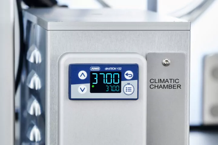 The Climatic Chamber enables a condensation-free operation. It accomodates all required components of the VITROCELL® 24/48 System. The humidification station, pre-heating system for dilution air and flow controllers are mounted inside the chamber for constant temperature and increased humidity output.