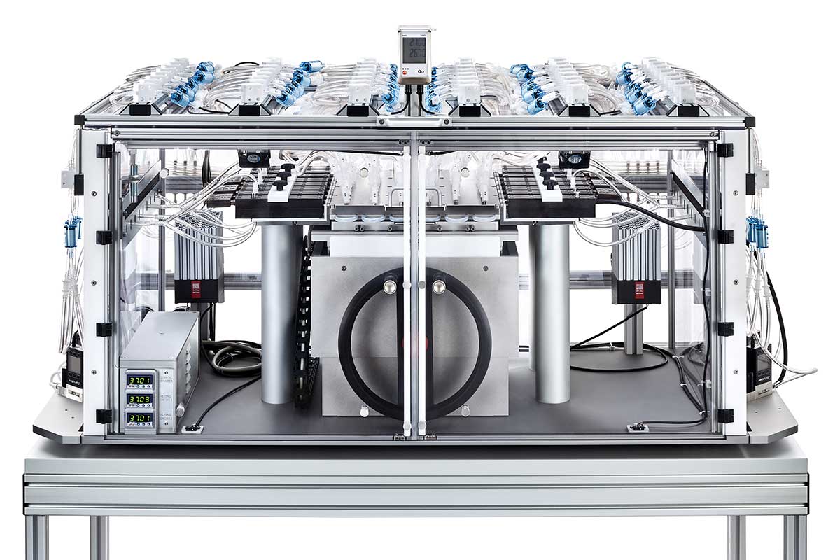 The base module has been designed for 48 cell culture inserts. The media is supplied individually to each well compartment.