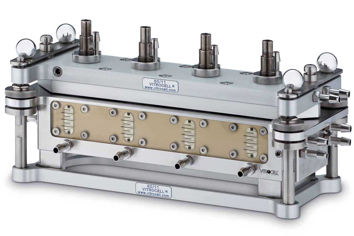 VITROCELL® exposure systems have been specifically designed and engineered to give researchers the possibility of directly exposing mammalian cells or tissue at the air/liquid interface. Thus, all cell types cultivated on microporous membranes can be used. This approach allows for more credible and authentic results than by submerged exposure due to a closer replication of the human physiology.