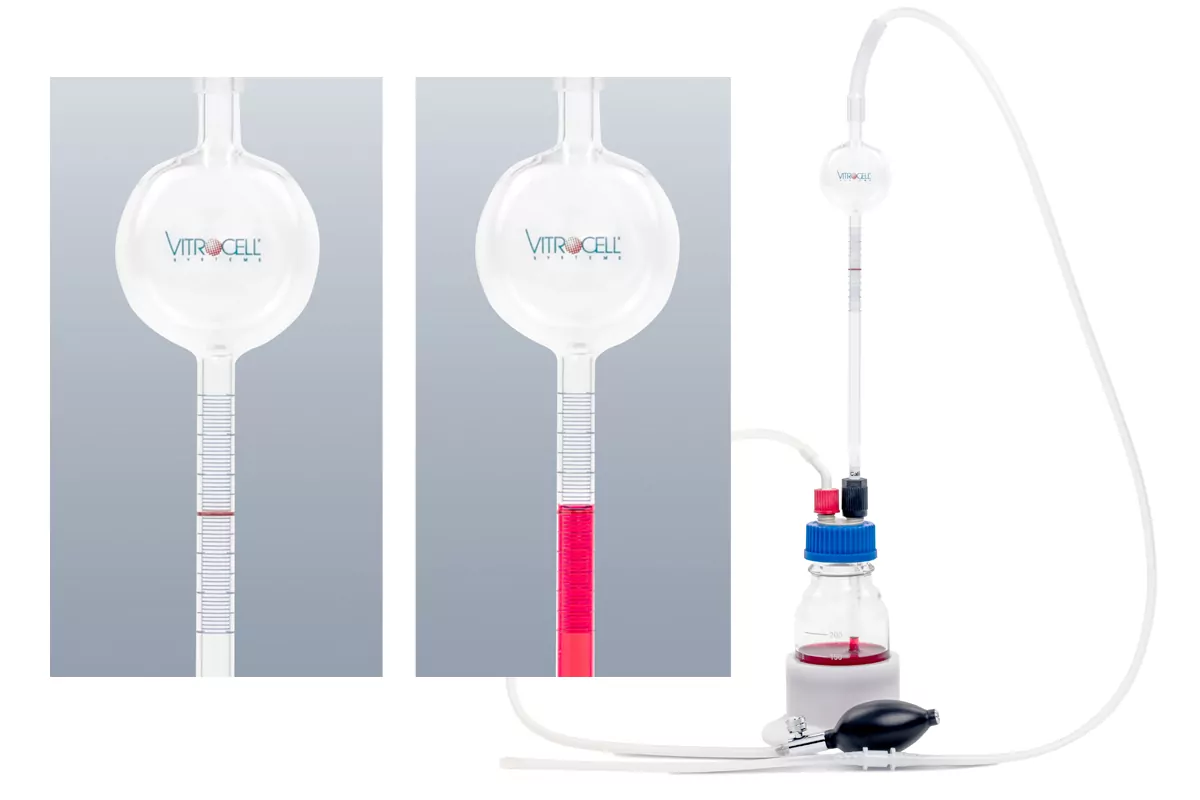 The respective leakage rate is expressed in mm/60 s of fluid drop in the test column. If the instrument is connected to a closed system, this rate determines the amount of air entering the system from the outside as induces by a leak.