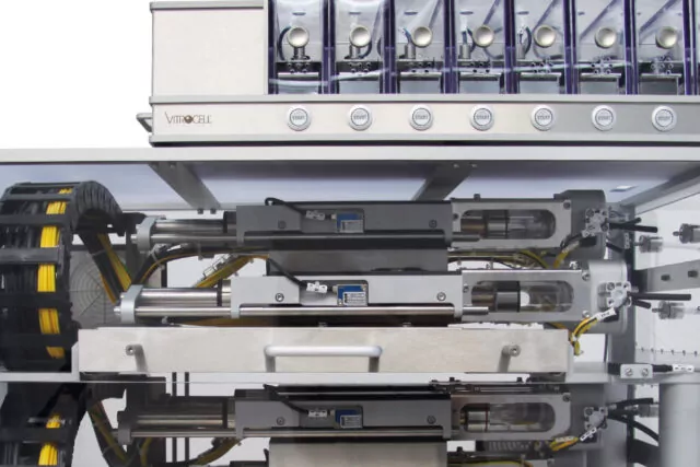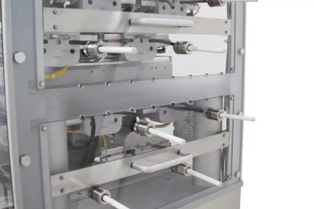 Linear motor drive system with lowest dead volume and easy cleaning features. Each syringe drive can be programmed with an individual regime.