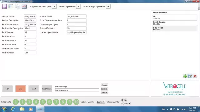 Data generated by a Smoking Puff Analyzer is directly loaded to the controls of the machine.