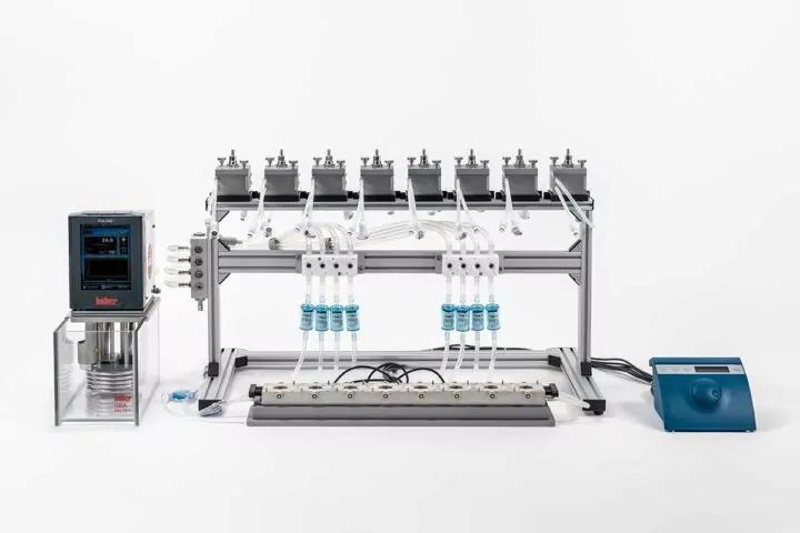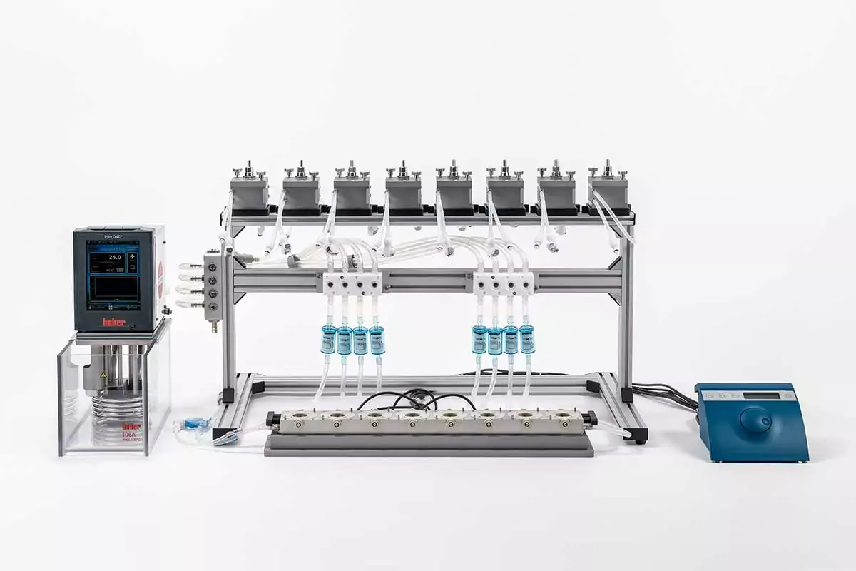 The VITROCELL® Aerosol Max module is a unique system with 8 chambers for tissue to aerosols and gaseous compounds. The base module and covers are made of high-quality stainless steel. This module is a superior alternative to Franz cells.