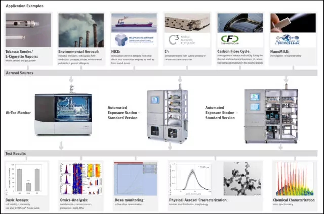 Due to the stable framework conditions and precise control, a large number of complex aerosols can be investigated over an exposure duration of up to 48 hours.