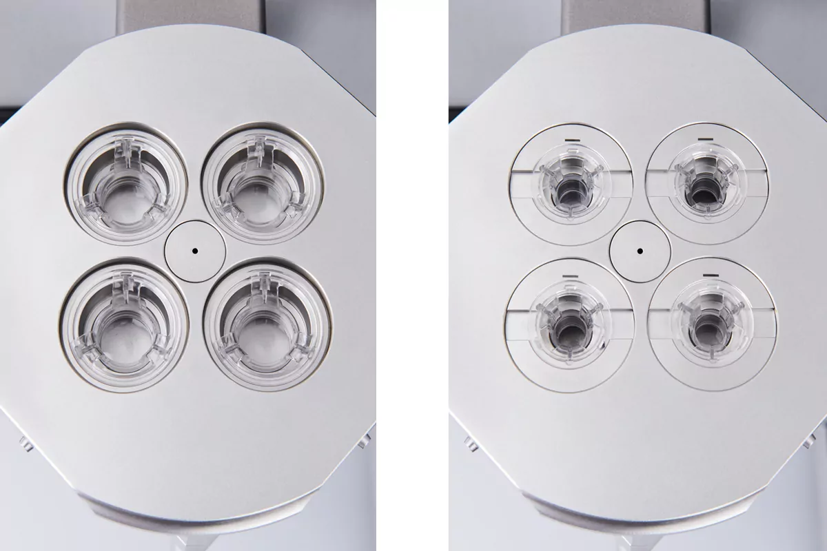Base module houses 12- (left) or 24-well sized inserts (right).