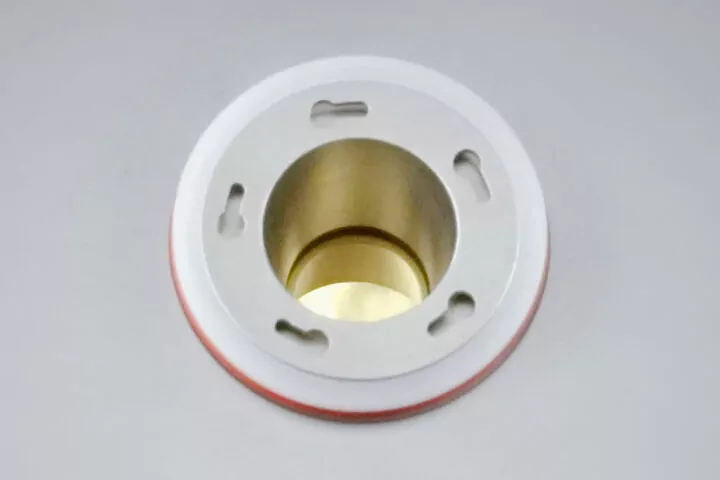 The aerosol inlet-stream flows through specifically shaped inlets. They are available in stainless steel or stainless steel with unique VITROGLIDE surface treatment for lowest adhesion results. The stainless steel / VITROGLIDE inlets are specifically designed for aerosols containing nanoparticles.