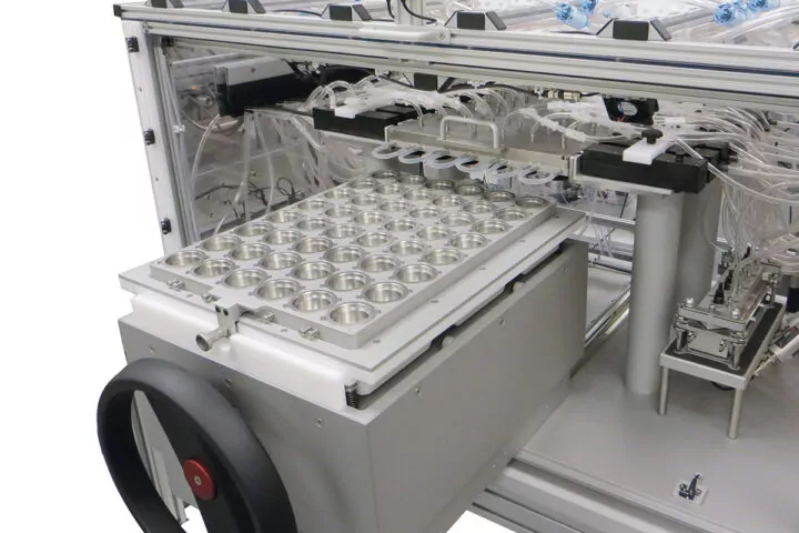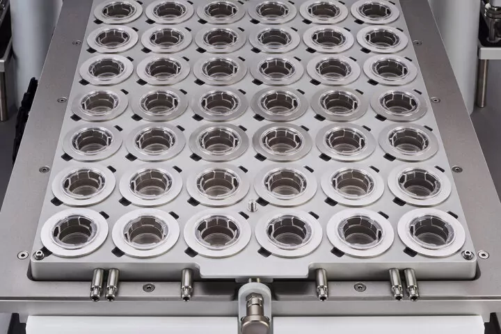 The base module has been designed for 48 cell culture inserts. The media is supplied individually to each well compartment.