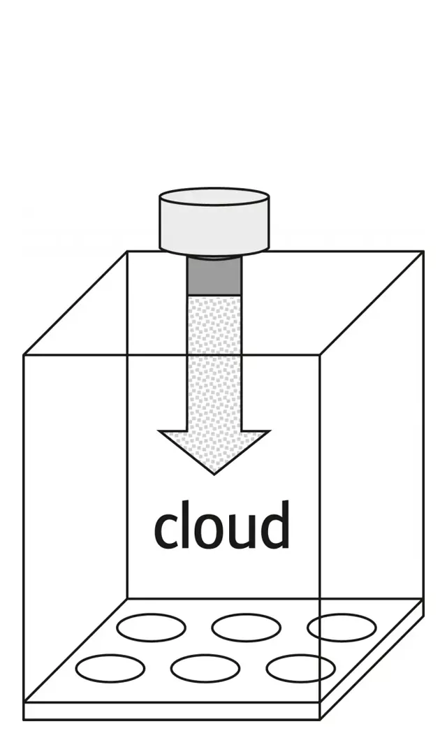 A typical Cloud exposure allows 3 consecutive nebulizations. The PowerVent option enables an increase of the dose by adding further nebulizations. After each nebulization the humidity is removed by a short venting period before starting the new one. The venting function can be edited in the software. The PowerVent unit is delivered ready-to-use with an integrated vacuum pump.