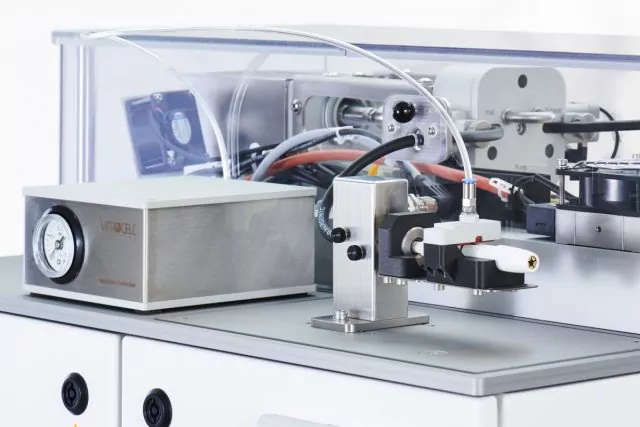 The manual smoking machine VC 1 is designed to fulfill the requirements of in vitro experiments with cultivated cells, e. g. from humans. For conventional and electronic cigarettes.