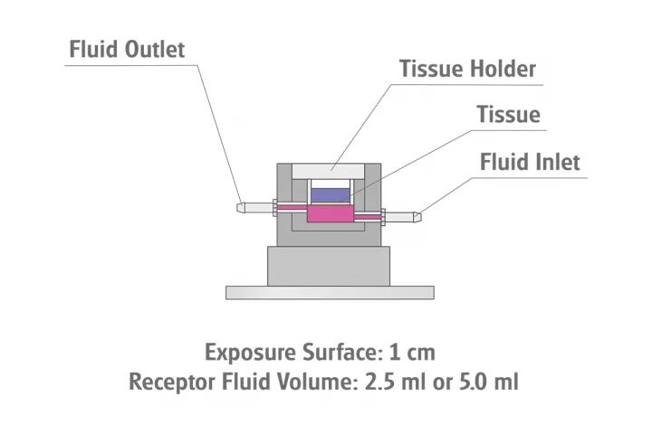 The unique tissue holders have been specifically designed to enable tight and reliable skin fixation. This module is a legitimate and superior alternative to Franz cells.